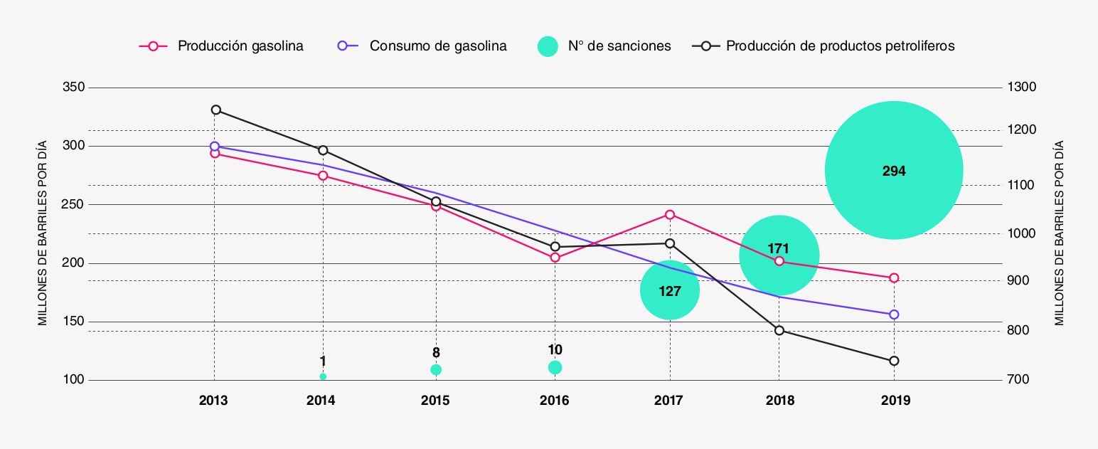 La operatividad del Complejo Refinador Paraguaná, uno de los más grandes del mundo, fue reducida por falta de equipamiento e insumos, afectando la producción de gasolina y derivados.