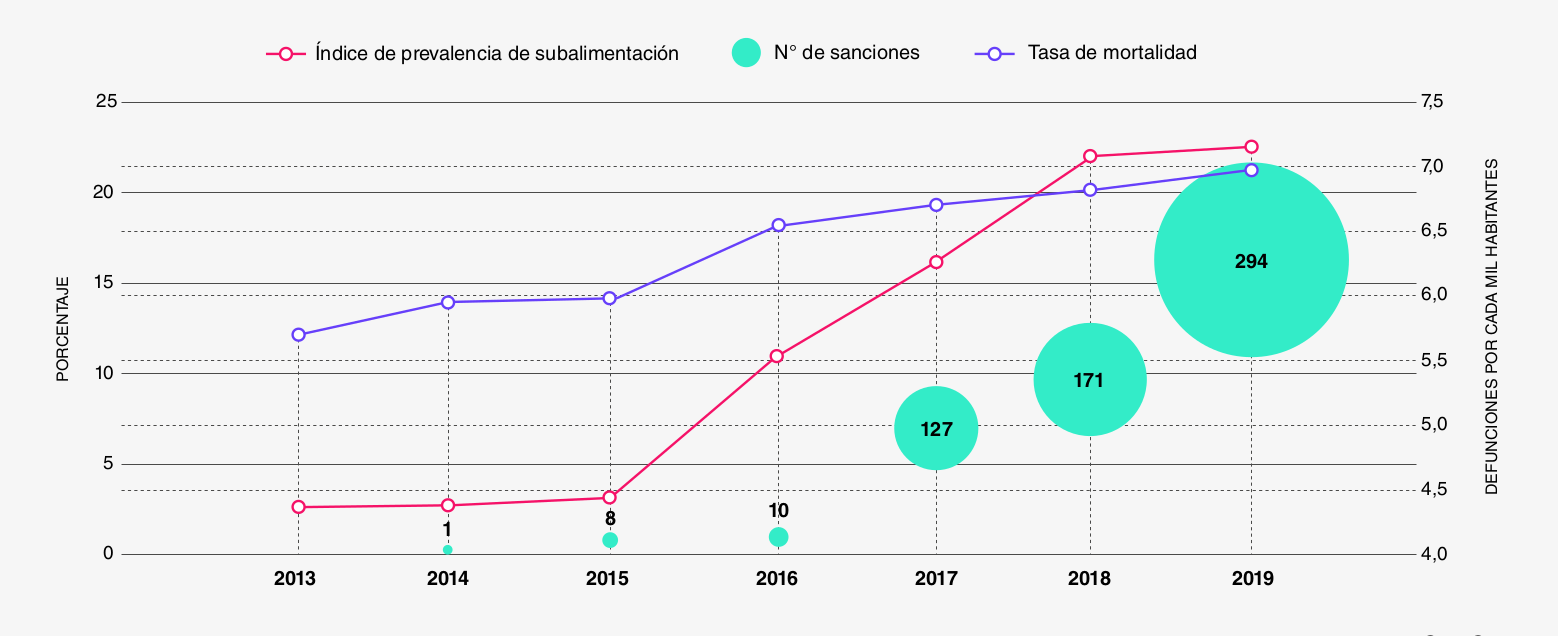 La correlación entre sanciones y hambre es innegable. Como documenta el estudio de Weisbrot y Sachs para el Center for Economic and Policy Research (CEPR) de mayo de 2019, cerca de 40.000 venezolanos murieron como consecuencia directa de las medidas coercitivas unilaterales. La tasa de mortalidad se elevó paralelamente al índice de subalimentación entre 2015 y 2019, evidenciando el impacto letal del asedio económico.
