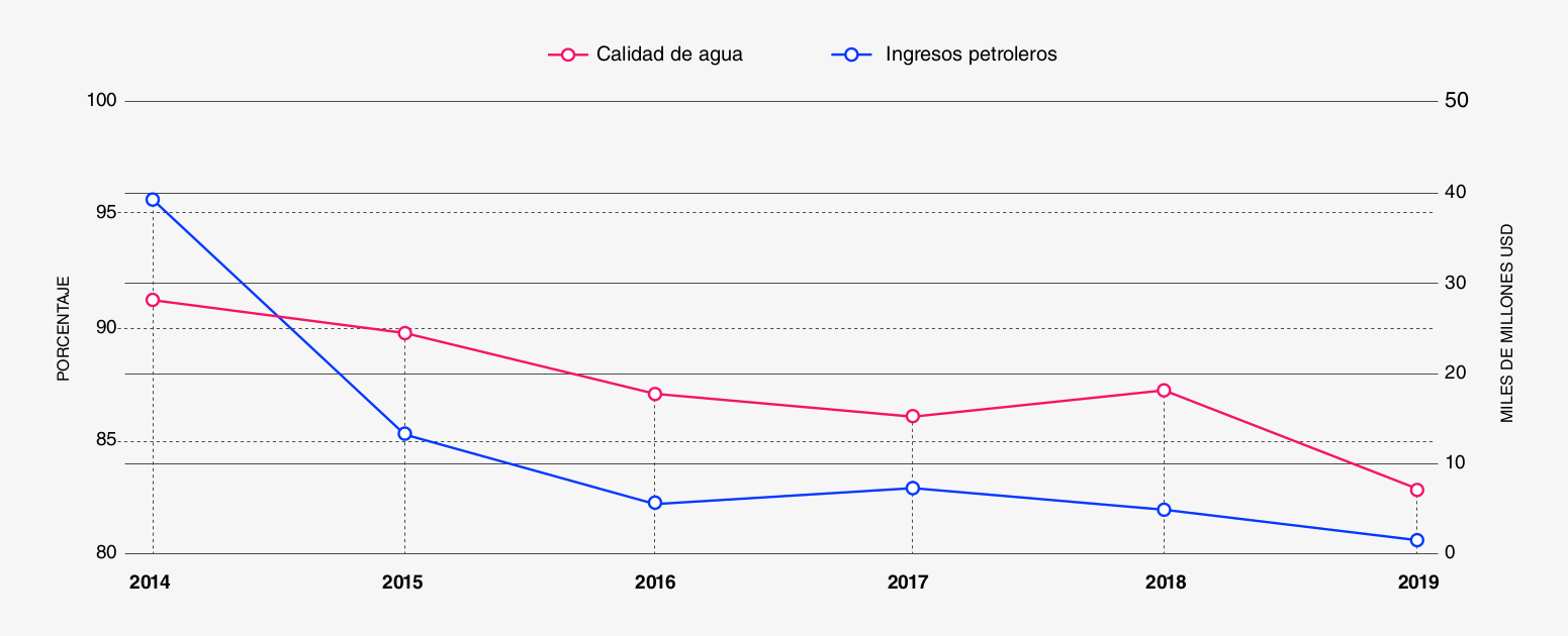 La calidad del servicio de agua potable, medida por indicadores de potabilización, cayó del 91,3% en 2014 al 82,8% en 2019. La C.A. Hidrológica Venezolana (Hidroven) enfrentó la imposibilidad de adquirir repuestos, equipos de bombeo y materiales de tratamiento debido al bloqueo financiero. La recuperación de piezas eléctricas para sistemas de bombeo sonaba “lejano" cuando las empresas extranjeras no podían ofrecer repuestos por efecto del bloqueo.